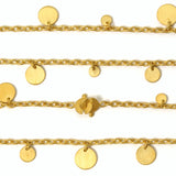 Suspended from a thin chain, the gold sequins twirl and capture the light.
