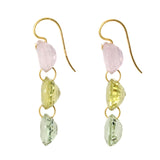 The Rivières earrings are composed of 3 cut multicolored quartz stones, pierced and linked by fine gold rings.