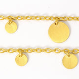 Suspended from a thin chain, the gold sequins twirl and capture the light.