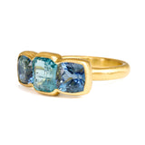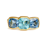 INDICOLITE TOURMALINE & AQUAMARINE TRIO PRINCESS RING