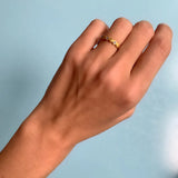 ゴールドのパイエットとダイヤモンドを組み合わせたこのリングは、マリーエレーヌ・ドゥ・タイヤックが石の輝きにブラッシュド・ゴールドの優しさを重ねるためにデザインしました。
